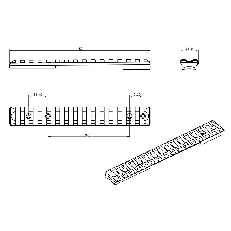 Slitta Picatinny [base di montaggio] per l'installazione di anelli per ottiche con base Picatinny.